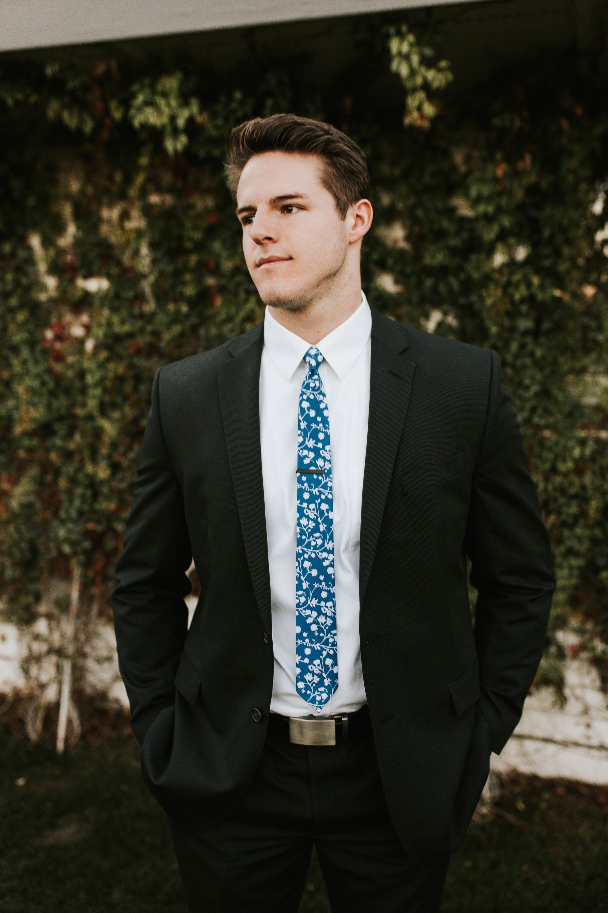 The Crater, our blue floral tie, is the perfect pattern to dip your toes into the garden of blossoms with. This light blue tie is subtle enough to not attract unwanted attention, but unique enough to help you stand out from the crowd. The white flower silhouettes gracefully weave their way across the tie like a swan gliding over still waters. What does that mean? It means it'll help you look and feel like a million bucks no matter the occasion. Available in skinny floral tie width (2.5") or standard width (3.25").