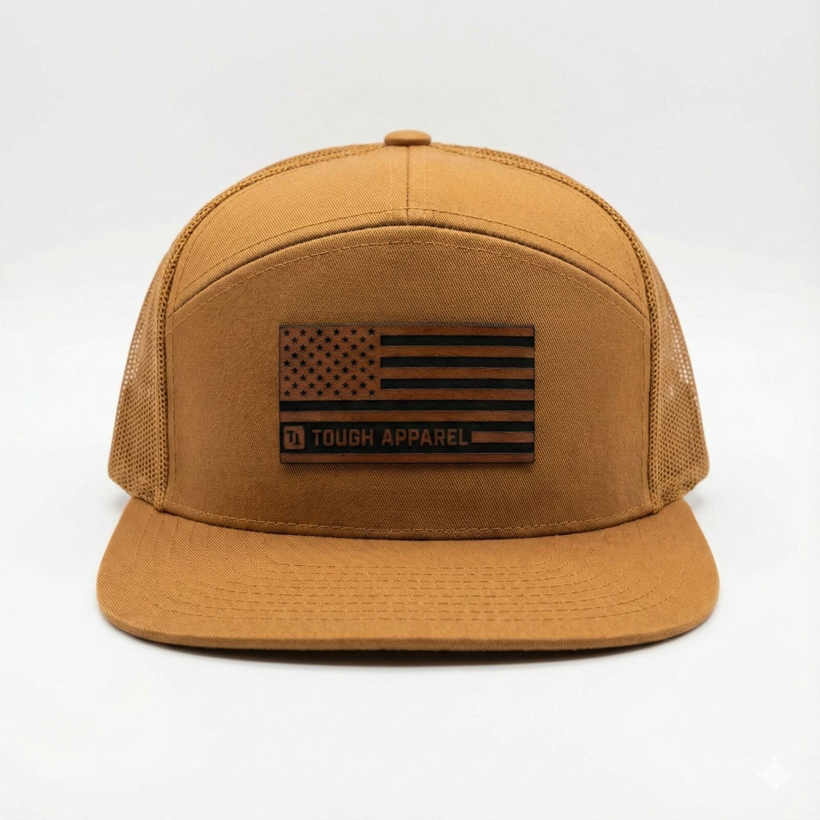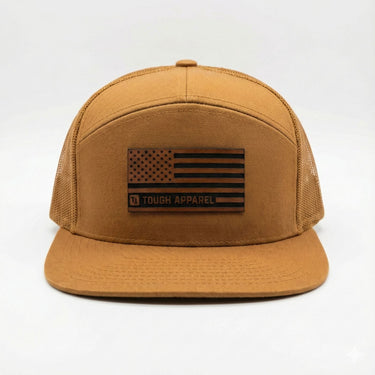 The Caramel Flag Hat is made for guys who stand out without trying. Its rich caramel base pairs with a bold etched flag patch, giving it that confident, everyday-patriot vibe. The structured front and breathable mesh back keep you cool whether you're working hard, kicking back, or heading out for the night. Clean, classic, and built to go wherever you do—this hat’s your new daily staple.