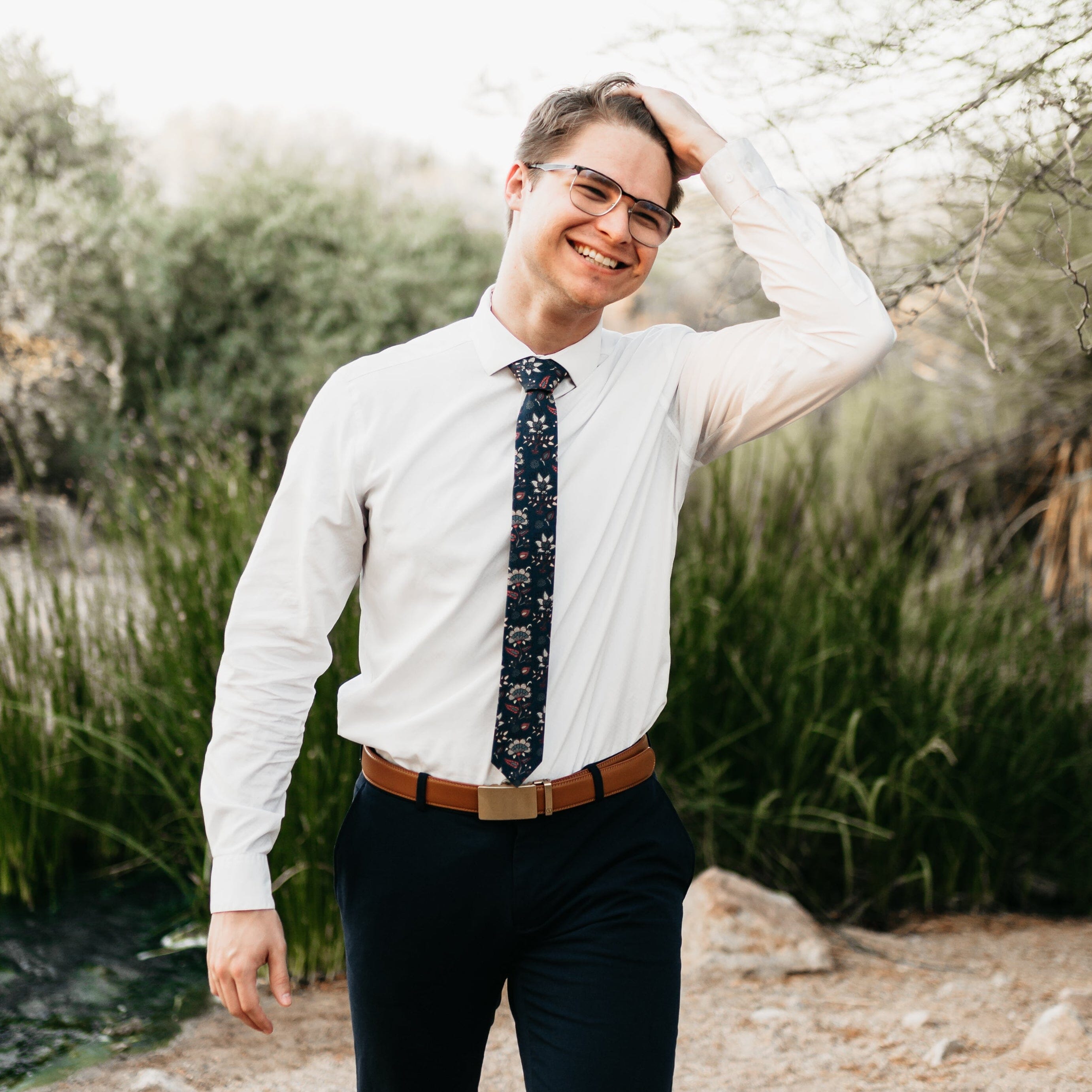 • Slim: 2.5" wide · ~59" long — a cleaner, narrower look and a smaller knot.