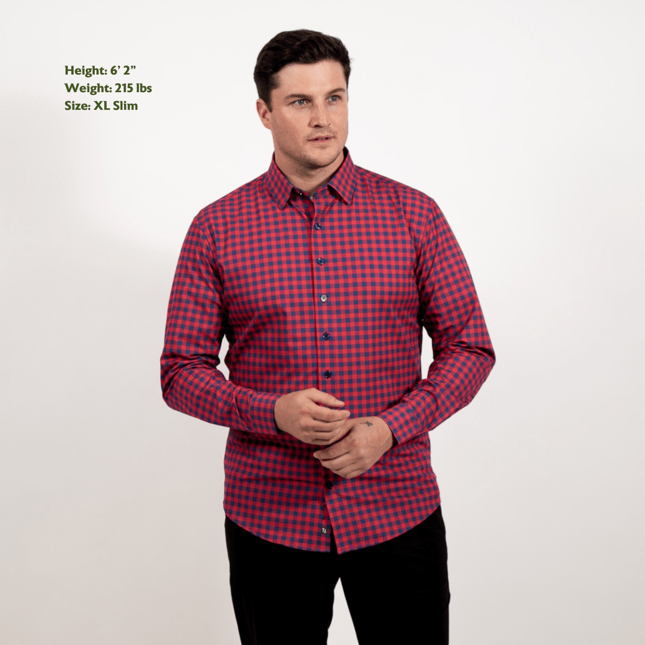 Sport Shirts include hidden button-down collar (no removable collar stays.)