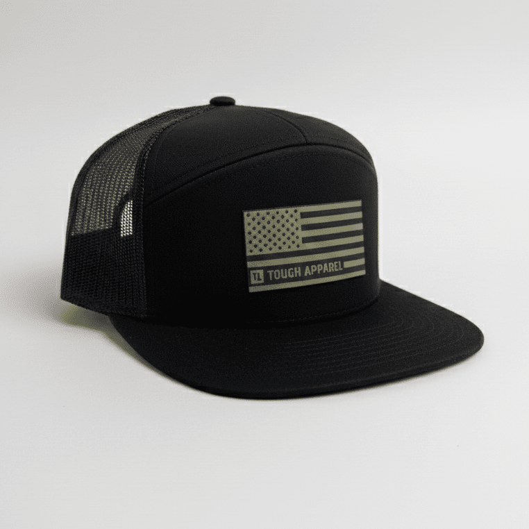 Flag Olive 7 Panel Trucker Black