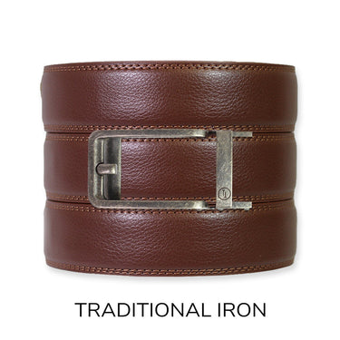 Chestnut Leather Ratcheting Belt & Buckle Set
